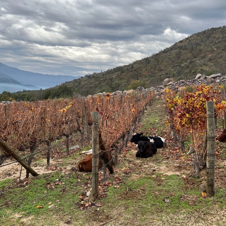 Logo de cara, o que chama atenção são os animais e as ervas no meio dos vinhedos, em uma integração total com o meio ambiente.