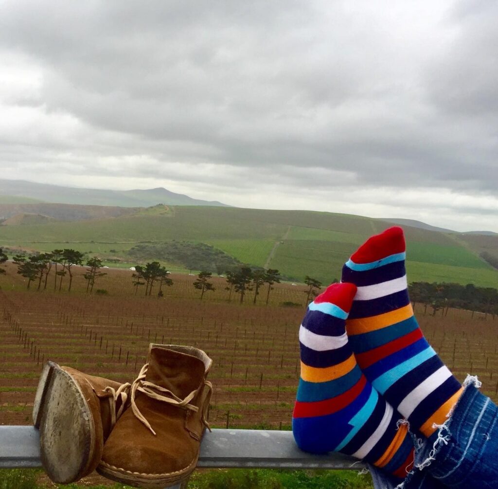 Para mim, essa meia é uma das bonitas que já registrei. Estávamos em uma vinícola a 20 minutos de Cape Town, num dia em que a temperatura caiu drasticamente, deixando o dia com uma cor incrível.